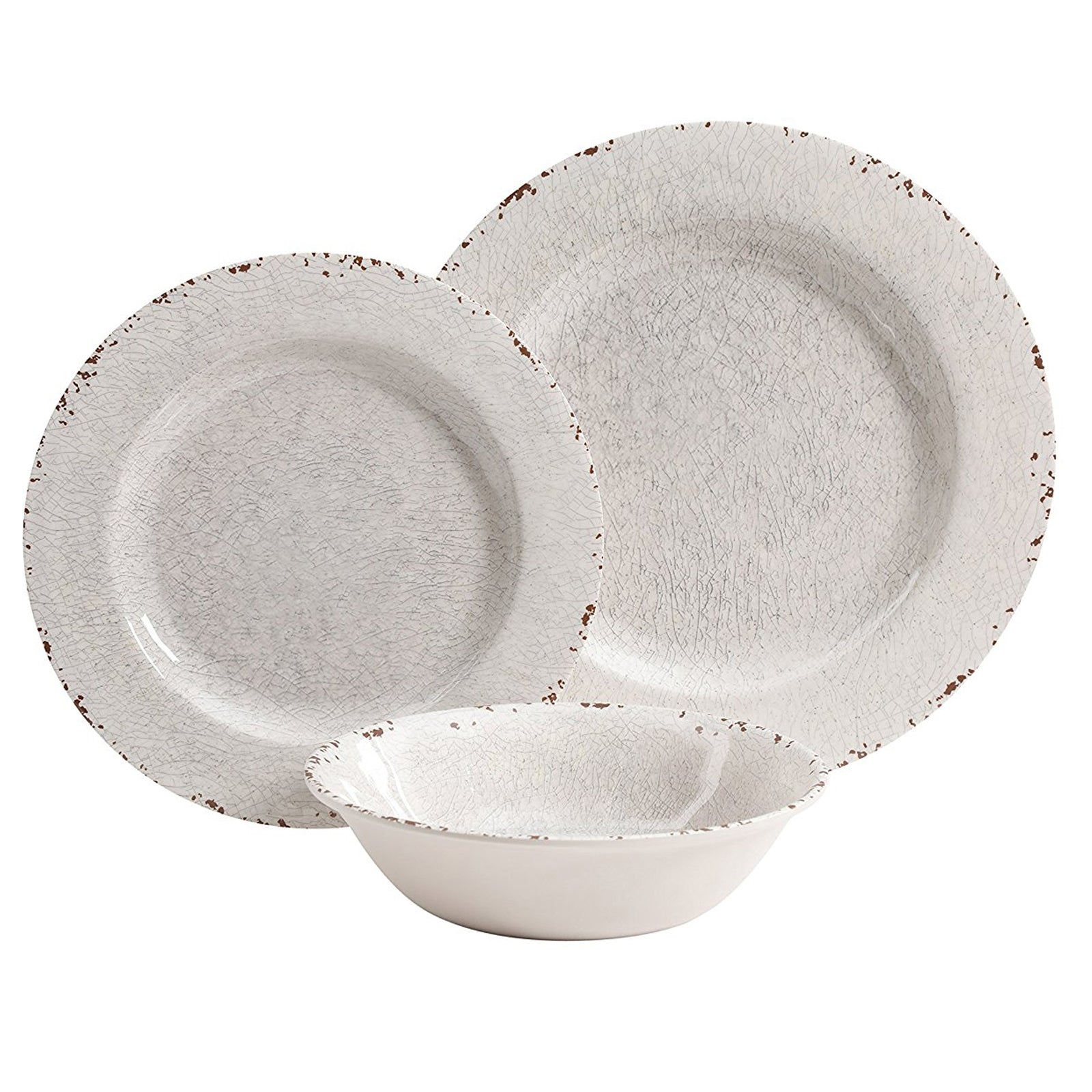 The Studio California Mauna 12 Piece Dinnerware Set is a festive light weight melamine. The set is durable enough for everyday use. Featuring a beautiful gray crackle look that is perfect for any occasion.
