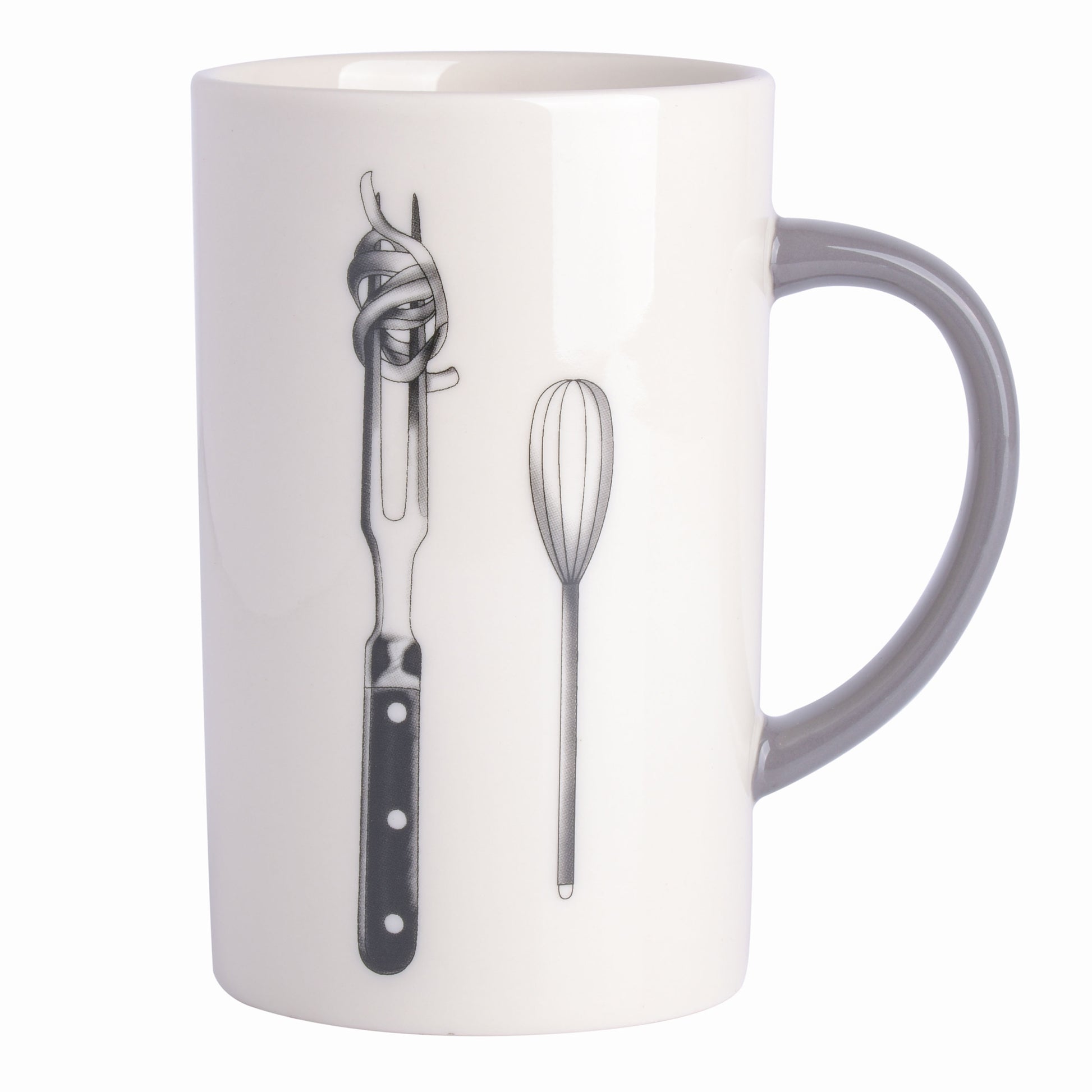Babish 15 Ounce Tall Fine Ceramic Fork and Whisk Mug in White