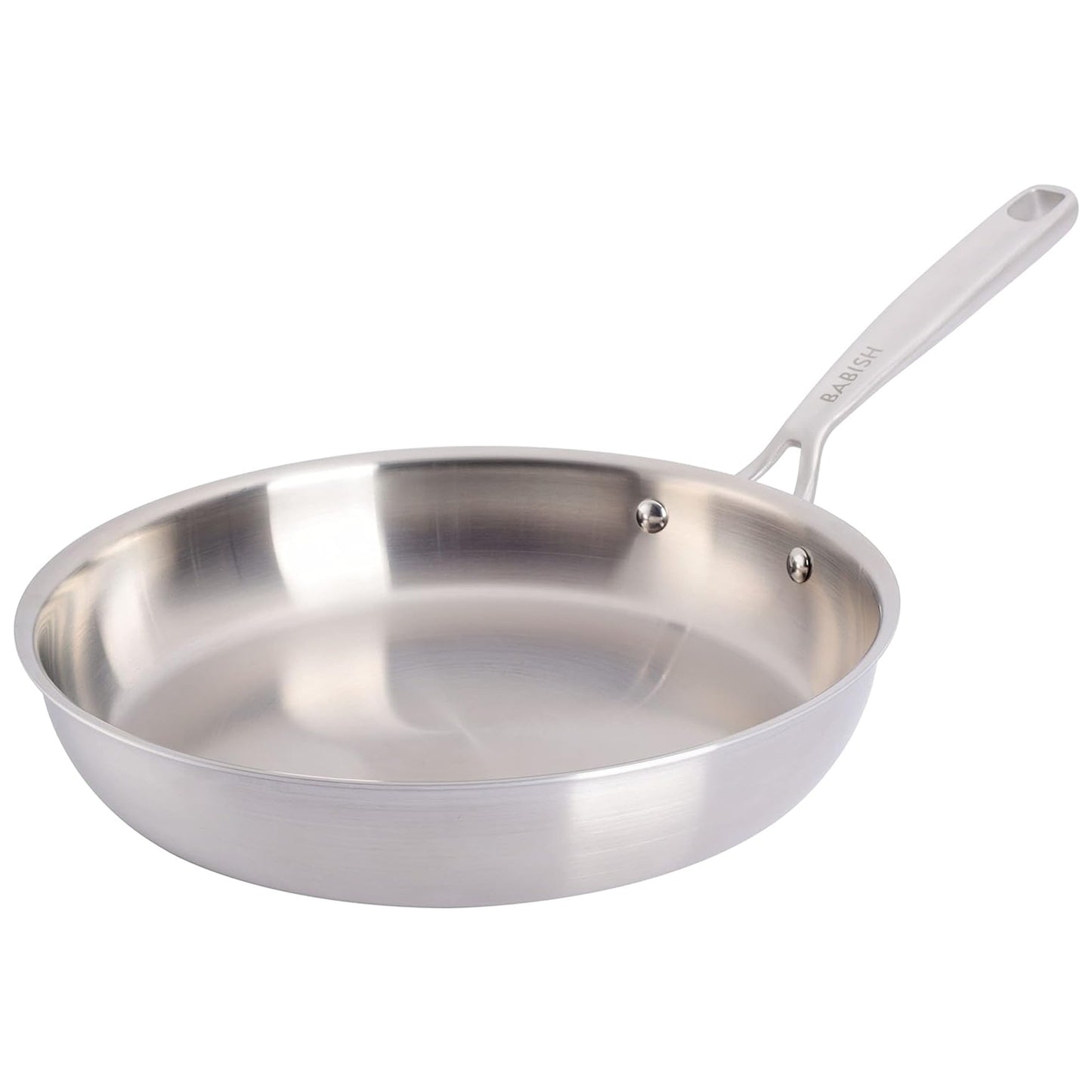 Babish 10 Inch Stainless Steel Tri-Ply Double Riveted Fry Pan in Silver