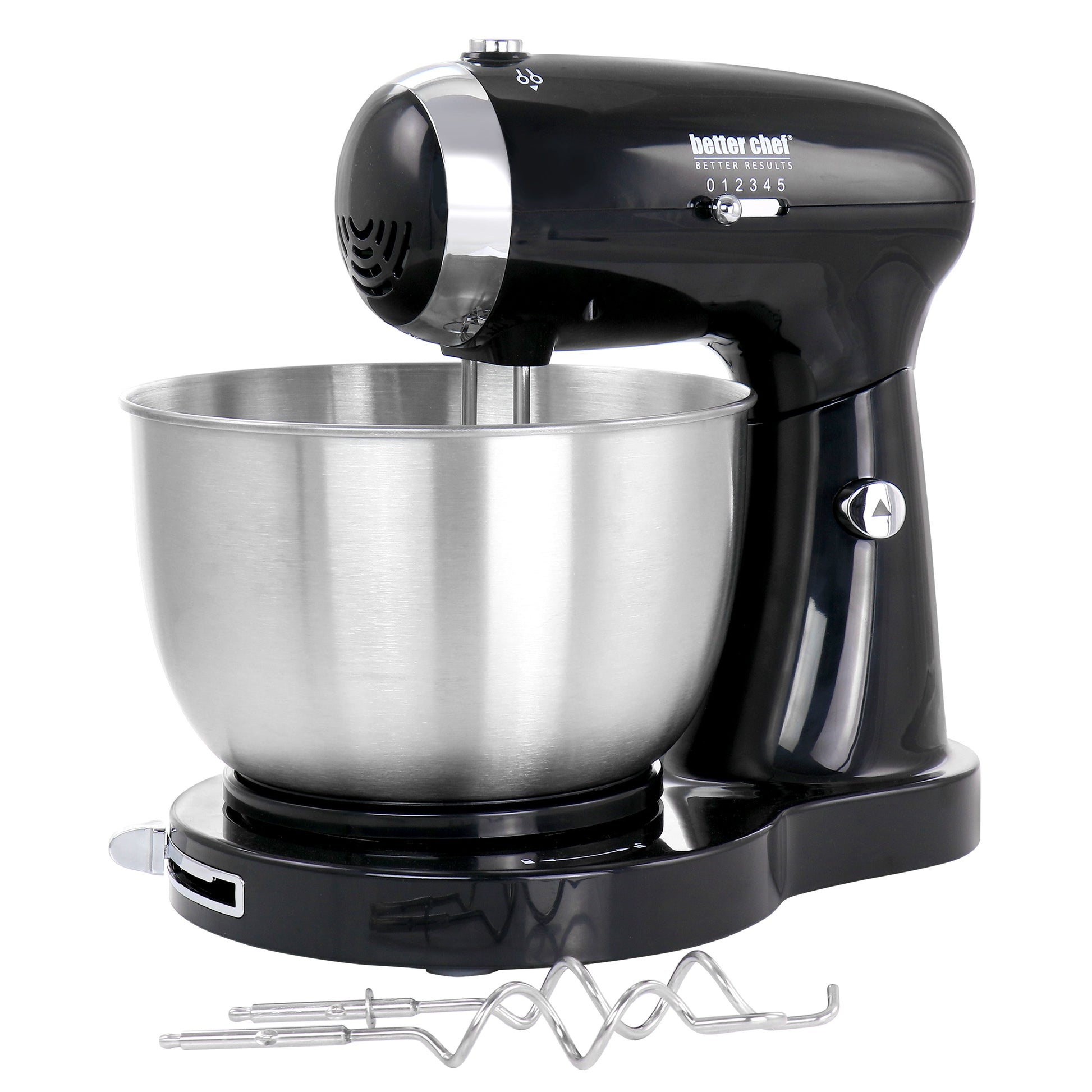 Mix, Blend, Beat and Kneed all with the Better Chef 350 Watt MegaMix Stand Mixer in Black. The 350 Watt motor and 5 speed settings cover most of your everyday mixing needs. Ideal for quickly and easily mixing up your favorite cookie dough's, mashed potatoes, bread dough's and so much more. Includes interchangeable beaters and dough hooks and aa locking stainless steel mixing bowl. Dishwasher safe accessories for easy clean up and compact for convenient storage.