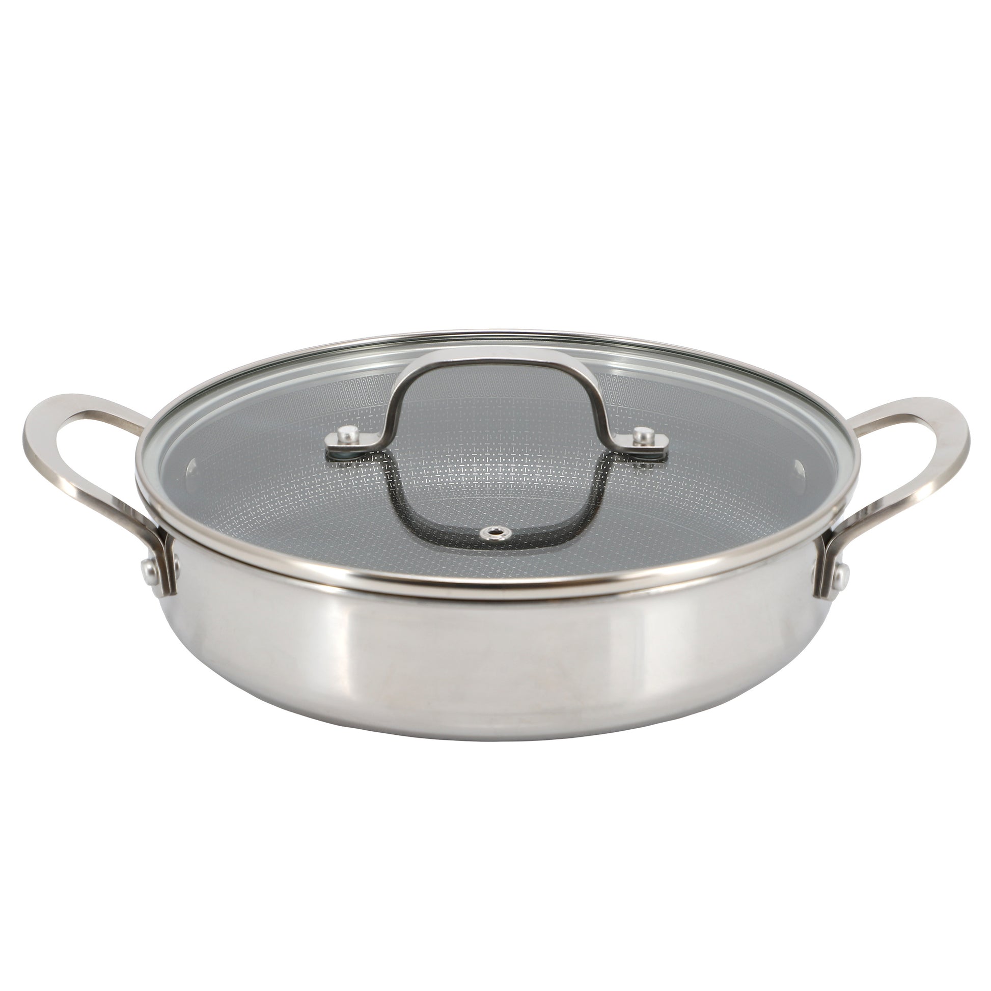 Better Chef 10 Inch 3-Ply Stainless Steel Nonstick Deep Fry Pan with Lid in Silver