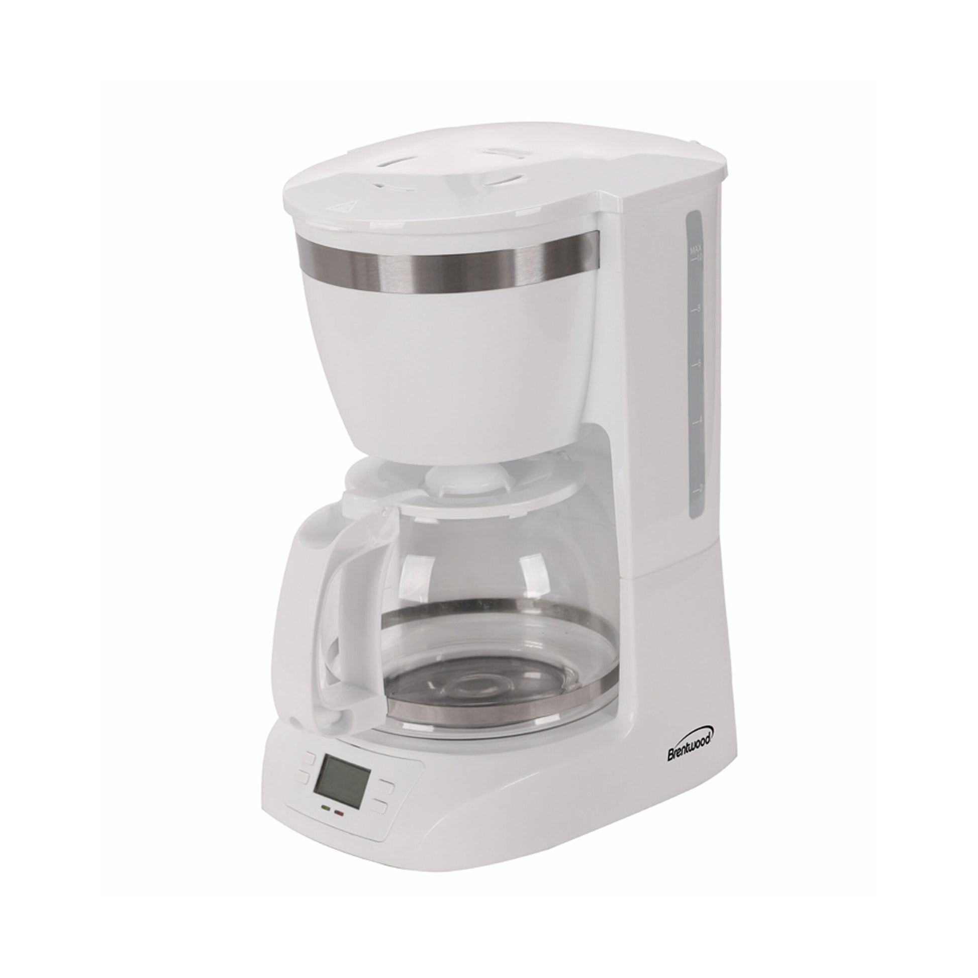 The Brentwood 10 Cup Digital Coffe Maker in White is a must have. With 10 cup capacity, this coffee maker will come in handy whether you are at home with your family or serving guests. This coffee maker features a programmable timer, pause n serve, and auto shut off after 40 minutes for safety and convenience. Warming plate keeps the coffee in the pot hot while it isn't brewing. Reusable filter basket is easy to remove and clean all while saving you money on filters.