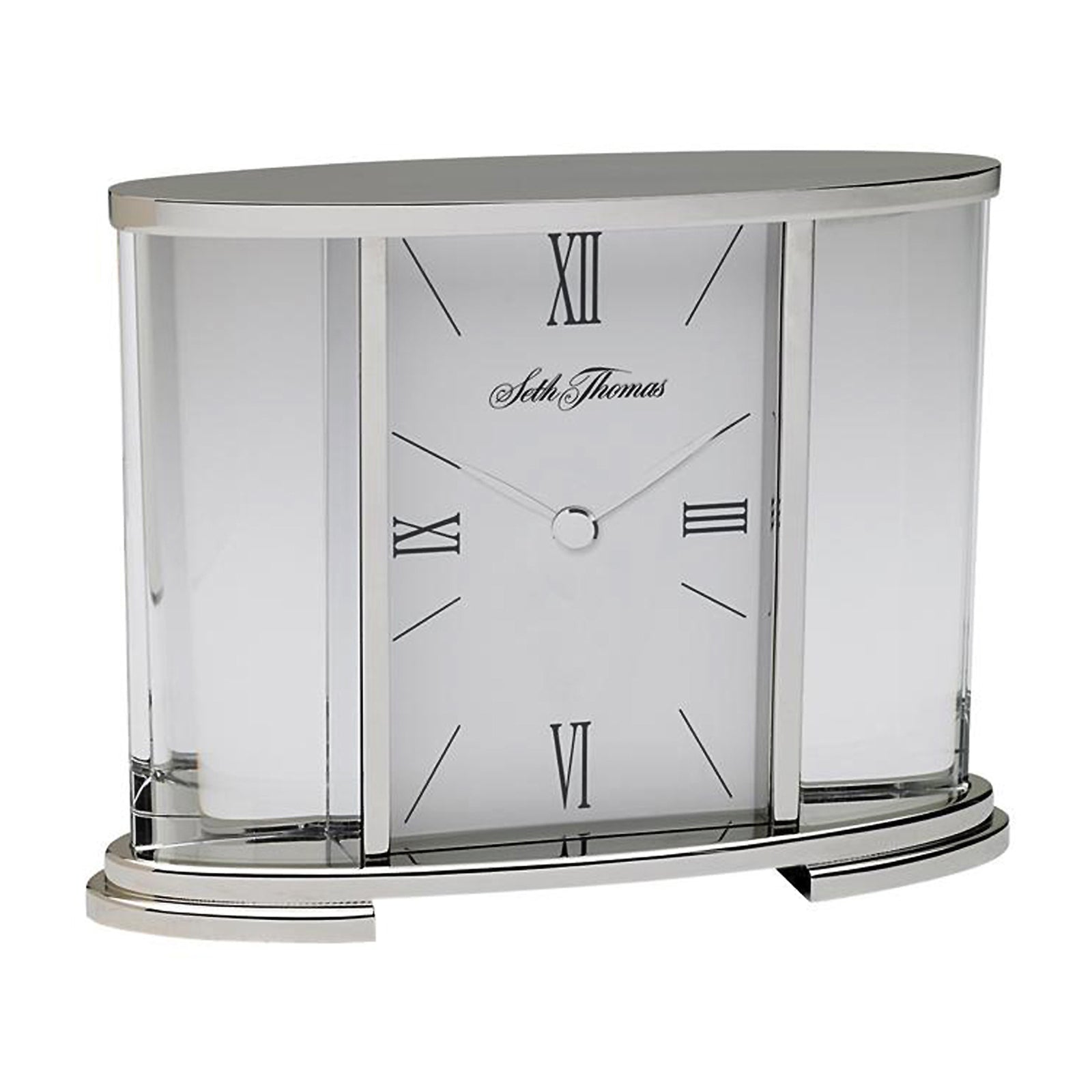 Seth Thomas Silver Glass Carriage Table Clock