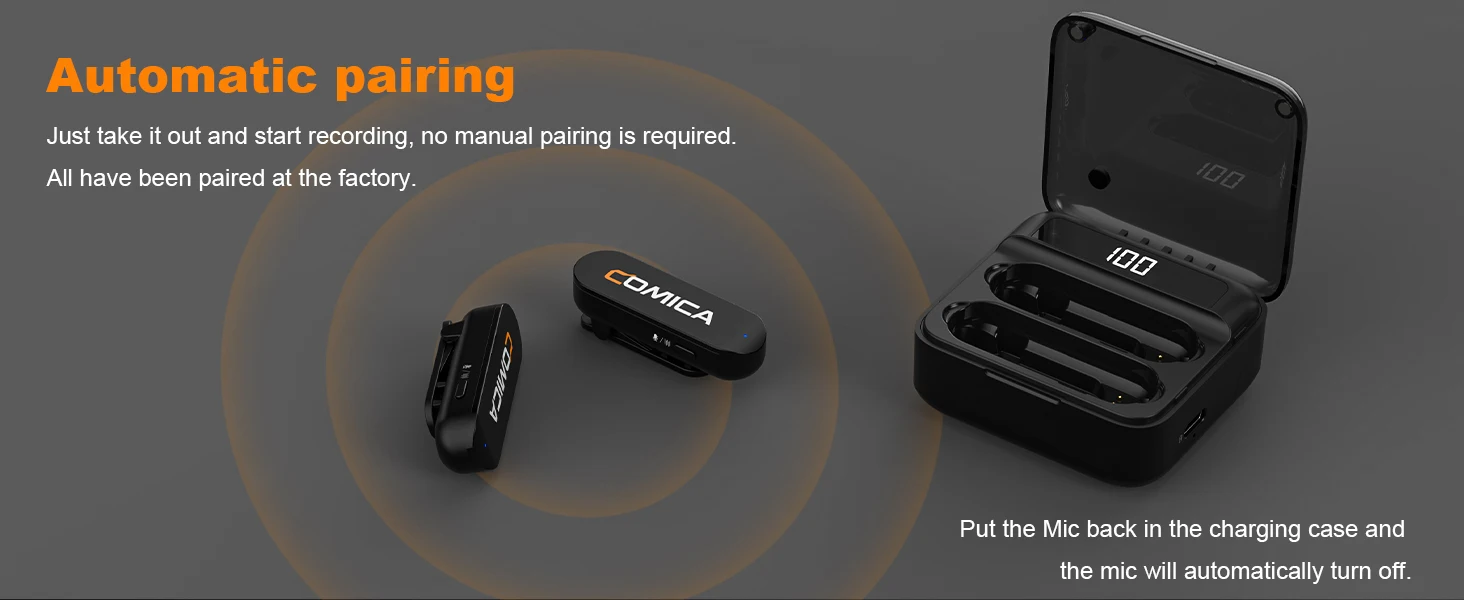 Color: Red, Ships From: CHINA - Comica Vimo S Wireless Lavalier Microphone 2.4G Compact Wireless Lapel Microphone With Charging Case for iPhone Android Phone